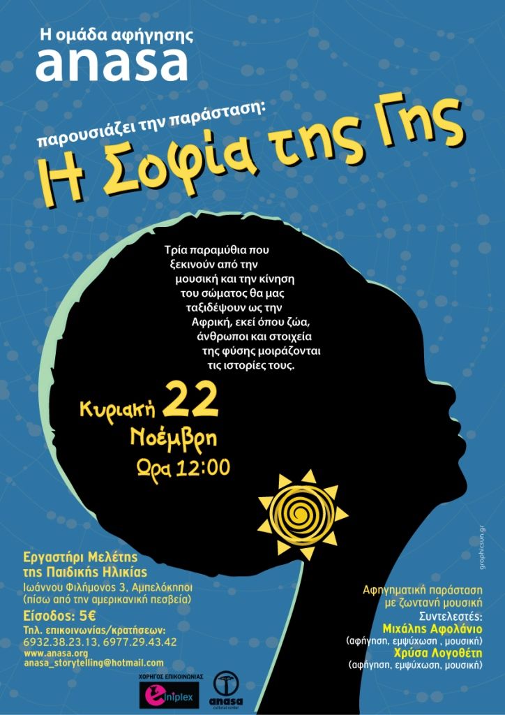 Αγαπημένοι φίλοι και φίλες, αυτή την Κυριακή, 22 Νοέμβρη, στις 12.00 το πρωί, η θεατρική ομάδα αφήγησης παραμυθιών ANASA θα βρίσκεται, μαζί με όλη τη σοφία της Γης, στο Εργαστήρι Μελέτης της Παιδικής Ηλικίας, Ιωάννου Φιλήμονος 3, στους Αμπελόκηπους! Σας περιμένουμε με χαρά! “Και η πήλινη στάμνα έσπασε σε […]