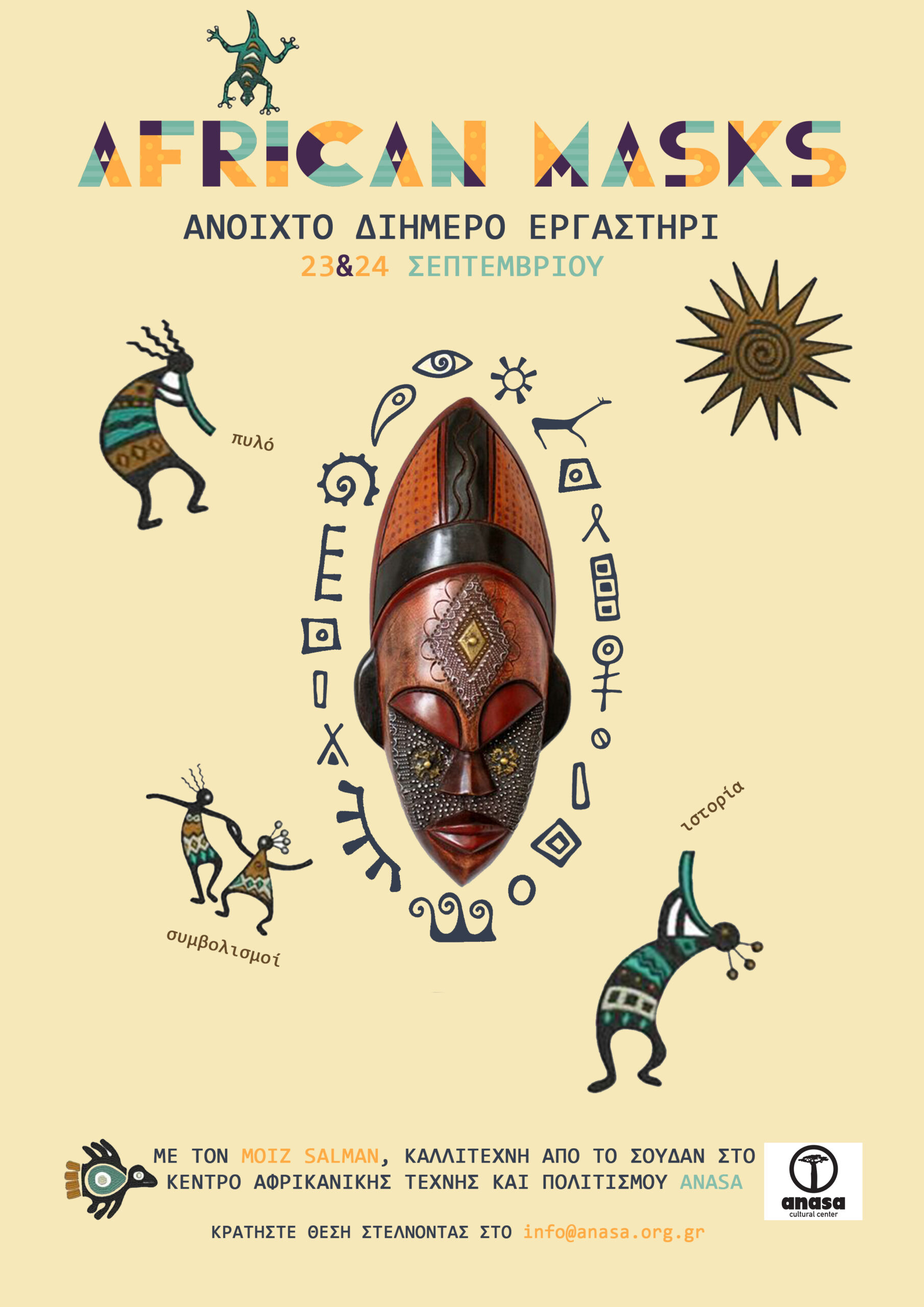 Ανοιχτό Εργαστήριο Αφρικανικής Μάσκας Στις 23-24 Σεπτεμβρίου στο πολιτιστικό κέντρο αφρικανικής τέχνης και πολιτισμών anasa θα πραγματοποιηθεί ενα ανοιχτό διήμερο εργαστήριο πάνω στις αφρικανικές μάσκες. Οι Αφρικανικές μάσκες θεωρούνται από τα ωραιότερα δημιουργήματα στον κόσμο της τέχνης και είναι περιζήτητα από συλλέκτες έργων τέχνης. Οι τελετουργίες με μάσκες […]