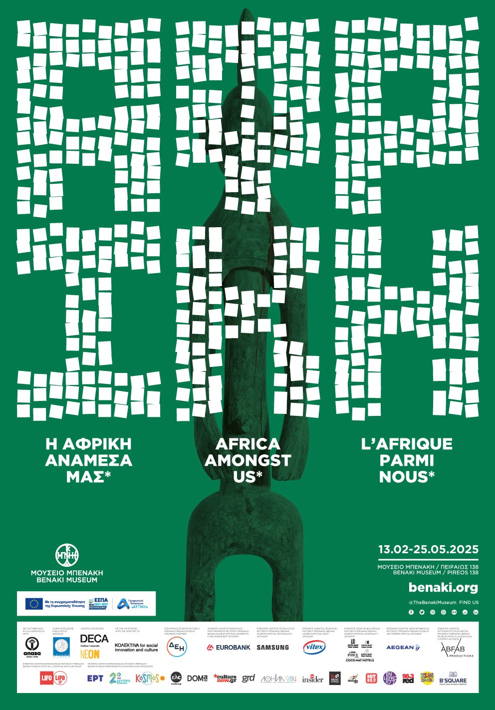 The exhibition “Africa Amongst us*” is part of the Action “The Collections of the Benaki Museum and Contemporary Design” of the Program “Attiki”, Partnership Agreement 2021-2027, and is co-funded by the European Union.
