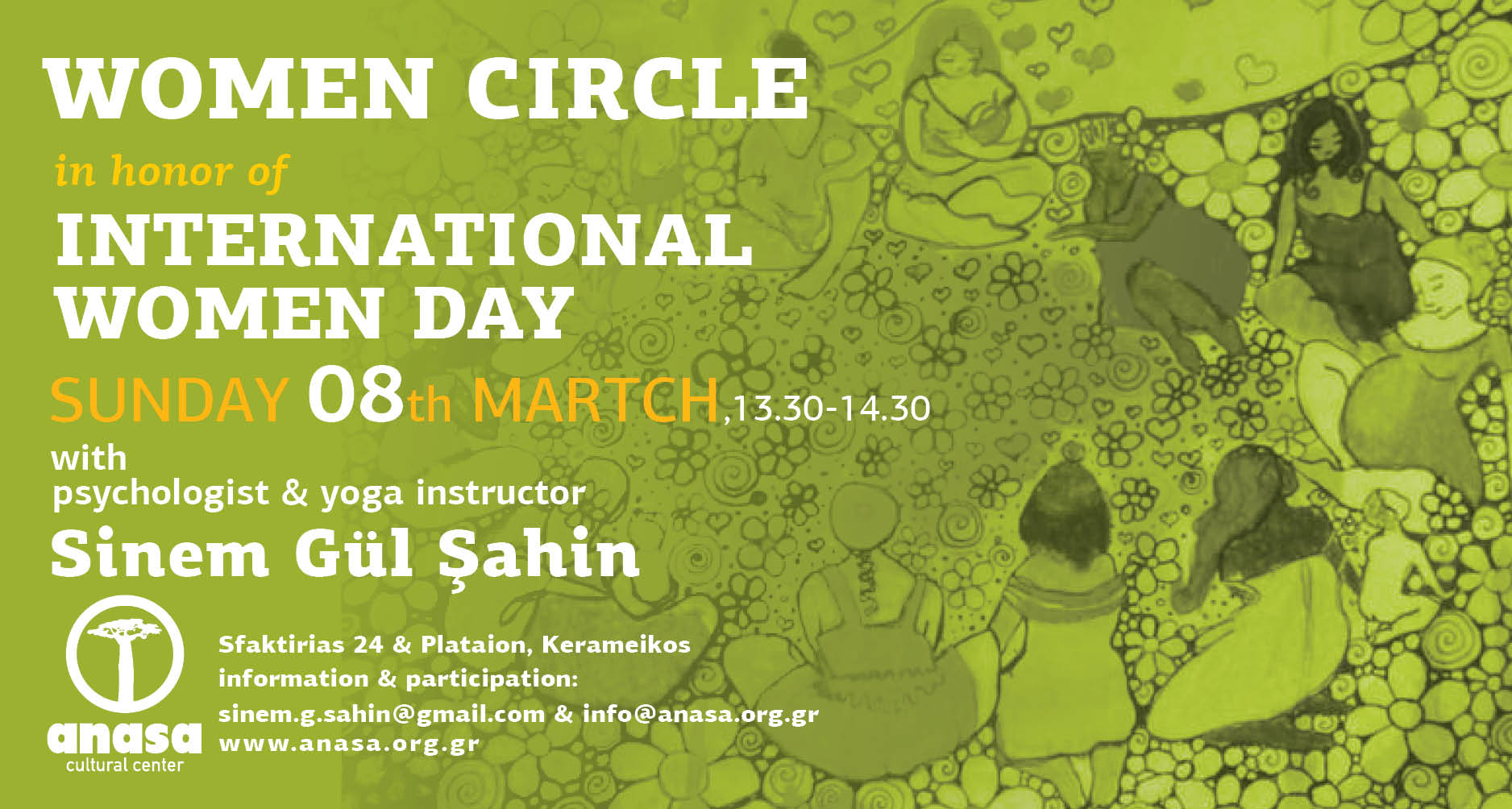 In honor of International Women Day, on 8th March between 13.30-14.30 our yoga teacher Sinem Gül Şahin arranges a women circle at Anasa Cultural Center. In circle as women we will share our feelings and thoughts, we will do a short series of balancing relaxing yoga that is for every […]